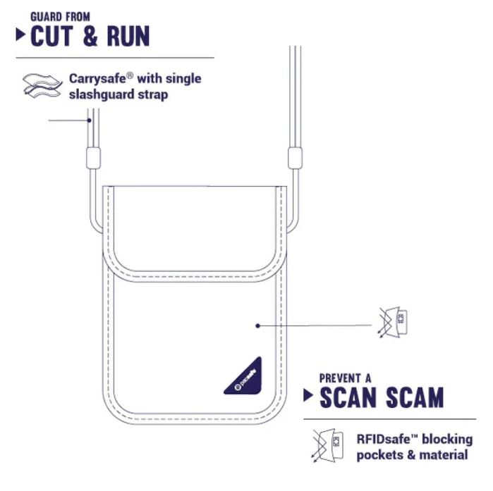パックセーフの多くのモデルには、無線周波数の送信を遮断する独自の「RFIDsafe(アールエフアイディーセーフ)」素材が使用されたポケットが備わっています。このポケットにカードやパスポートを入れておくだけで、外部からの不正なスキャンを完全にシャットアウトできます。物理的な強靭さに加え、このデジタルな守りがあるからこそ、パックセーフは世界中の旅行者から絶大な信頼を寄せられているのです。