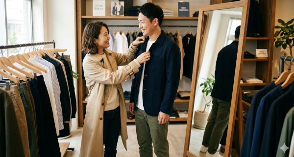 MENZ-STYLEの最大の特徴は、女性スタッフの意見をダイレクトに反映させた商品開発です。「女性から見て、横を歩いてほしい男性像」を徹底的にリサーチして作られたコーディネートは、清潔感、優しさ、頼もしさを同時に感じさせます。あなたが選ぶ一着が、大切な人との時間をより素晴らしいものに変えてくれる。そんな「愛されるファッション」の正解が、ここにはあります。